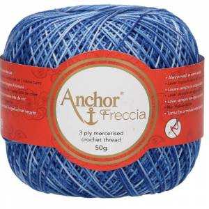 Jeder Ball enthält 50 Gramm Gewicht. Es ist in den Dickennummern 5, 8, 12, 16, 20 erhältlich. Coats Freccia Garn ist ideal zum Stricken und Häkeln. Jede Stärke wird mit einer anderen Strick- oder Häkelnadel gestrickt: