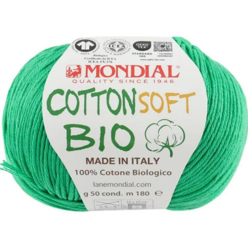 Es un hilo de Algodon fino y suave muy adecuado para hacer prendas de bebe primavera - verano. Lanas Mondial Cotton Soft Bio de Mondial es un hilo de algodón 100% orgánico, totalmente mate, ideal para trabajar prendas suaves, cómodas y mucho más transpirables que el algodón convencional, por lo que es súper recomendable para tejer todo tipo de labores para pieles delicadas y sensibles. La suavidad y naturalidad de este hilo ecológico son perfectas para estar en contacto con la piel de niños y bebés. Mondial Lanas Mondial Cotton Soft Bio es un hilo 100% algodón orgánico de alta calidad, que certifica su pureza y naturalidad, libre de sustancias químicas. Está tratado y tintado con productos naturales. Ideal tanto para bebés, como niños y adultos.