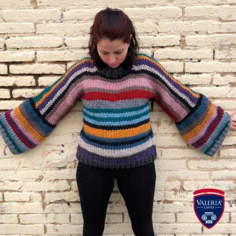 It is a ball of wool printed in very good color, ideal for jerseys, jackets, scarves, and hats. Alpes de Lanas Stop ball of wool printed in very good color, ideal for jerseys, jackets, scarves, and hats. With a single ball you can knit a hat and with two balls a scarf or a neck. The pattern of this wool goes from black to mix with the bright colors of each dye.